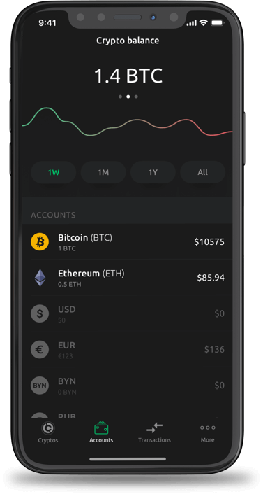 Наше мобильное приложение позволяет быстро покупать криптотокены с помощью фиатных денег по конкурентным ценам, надежно хранить ваши активы и легко осуществлять крипто переводы.
